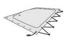 ![]() | Nun die Poolplane so verspannen und rundum befestigen, dass nur die seitliche Abschweißung über dem Poolrand übersteht |